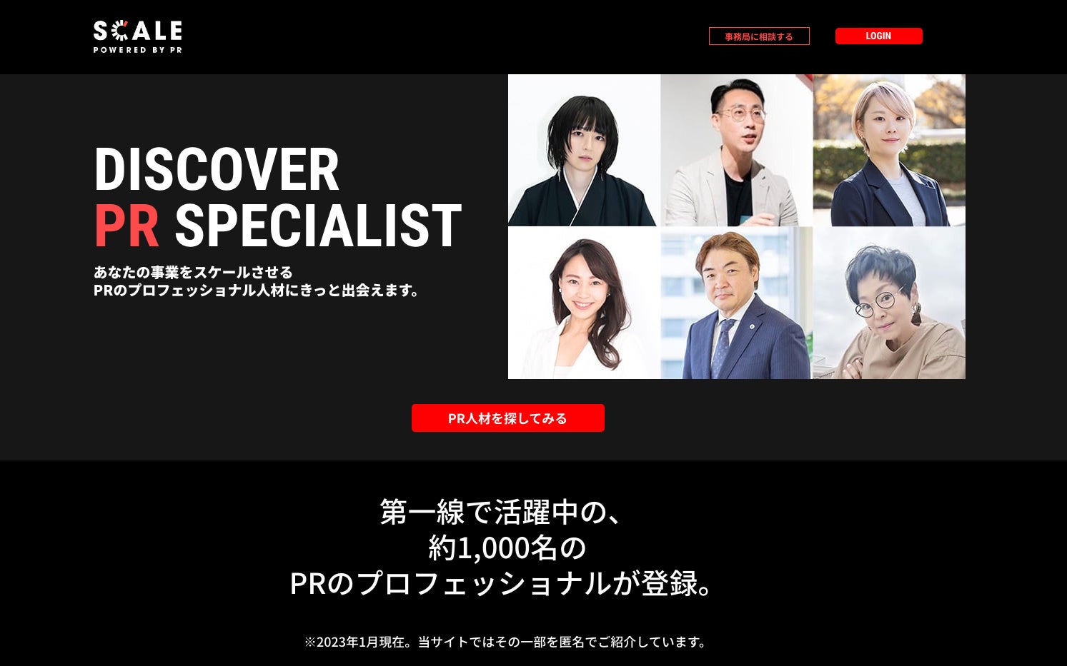 株式会社本田事務所(所在地:東京都港区、代表取締役:本田 哲也)と、株式会社ベクトル(所在地:東京都港区、代表取締役会長兼社長:西江 肇司)が共同で運営する成長型PR人材データベース「SCALE Powered by PR」(以降 SCALE)は、企業が最適なPR人材とより効率よくマッチングできるプラットフォームの実現を目指し、Webサイトをリニューアルいたしました。