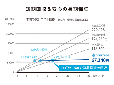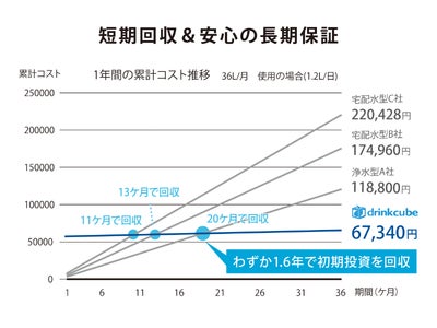 従来のウォーターサーバーと比較してコストを大幅に削減。
