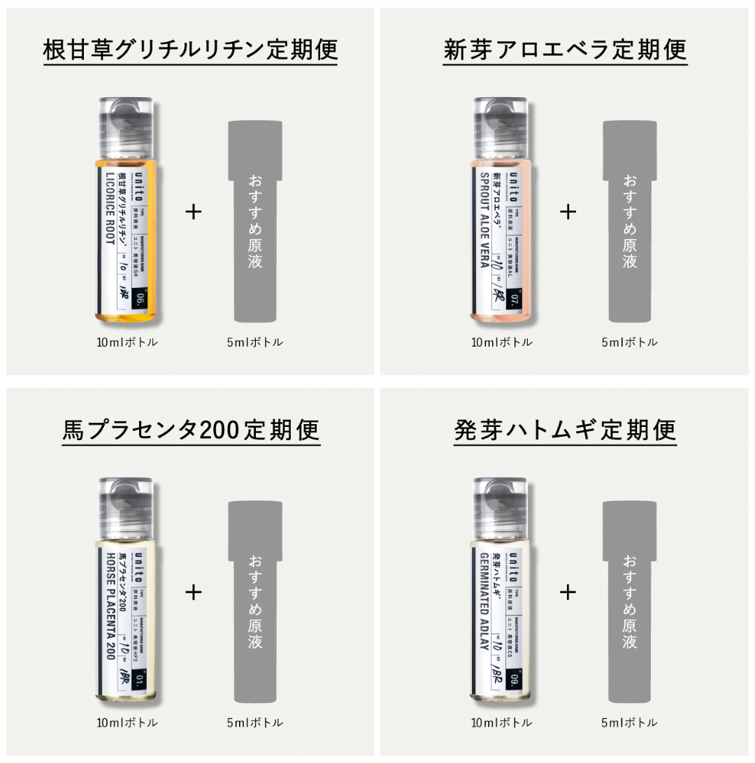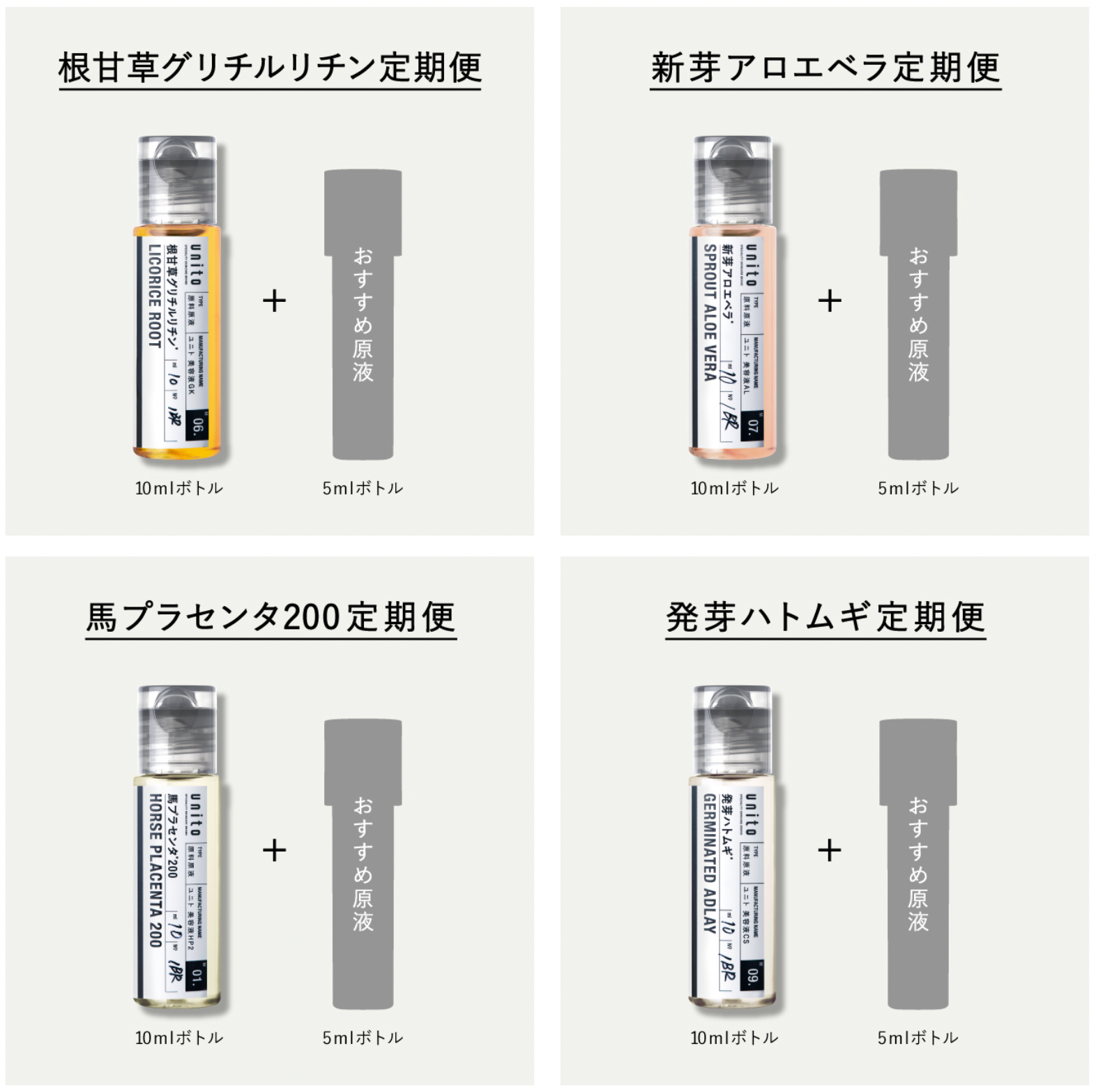 ・「unito」の原料美容液15種(5ml、10mlサイズ)