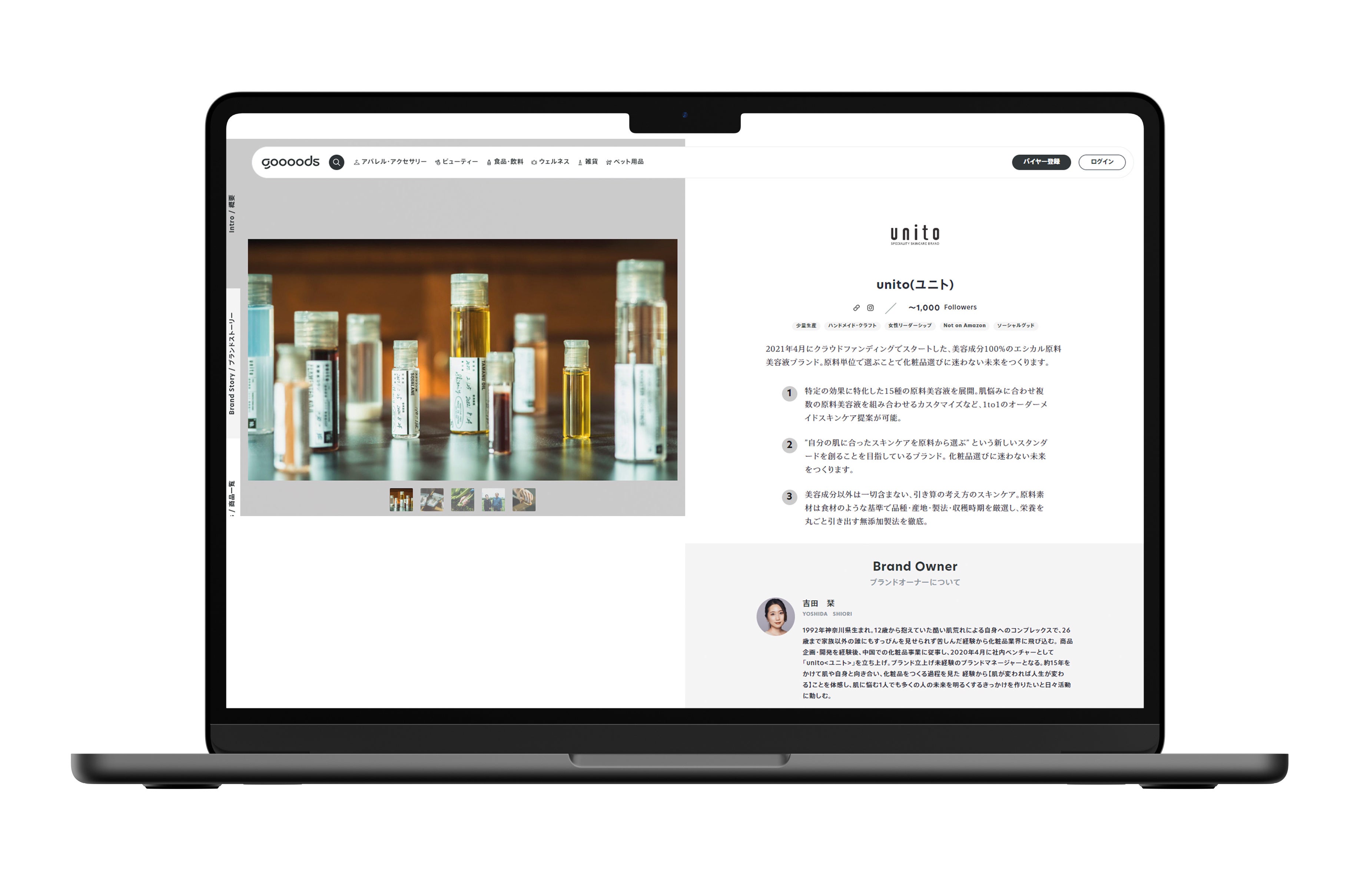 ・事業者向け卸売りマーケットプレイス(goooods):https://goooods.com/brands/4b74d8e7-3df6-4451-9d66-2b95ce9d7e8f