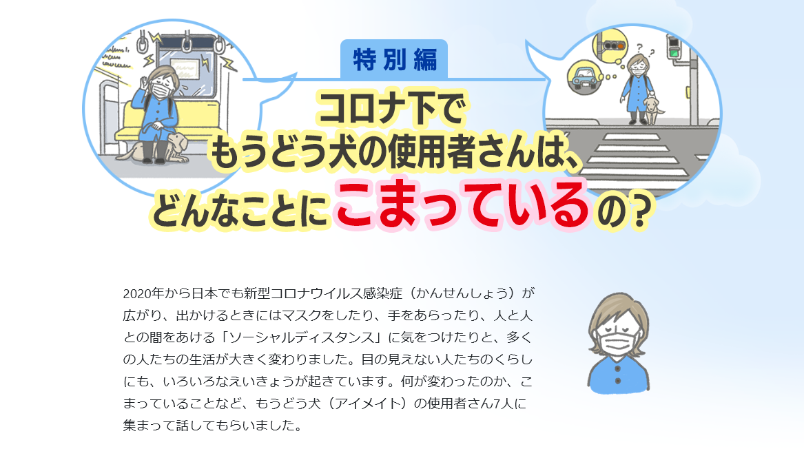 - 新コンテンツ『コロナ下でもうどう犬の使用者さんは、どんなことにこまっているの?』の主な内容