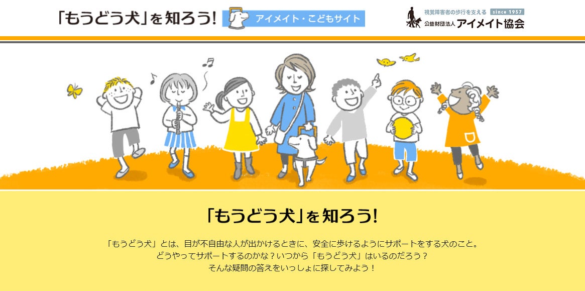 公益財団法人アイメイト協会(代表理事:塩屋隆男)は、2020年7月に開設した人気のウェブサイト「もうどう犬」を知ろう! ~アイメイト・こどもサイト~(https://www.eyemate.org/kids/)に、3月10日(木)より新コンテンツを追加しました。(対象年齢:小学校5年生以上)