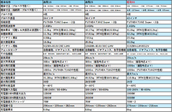 ■軽助/森飛シリーズ比較表