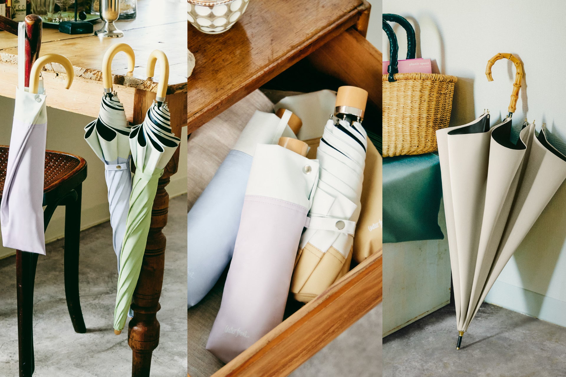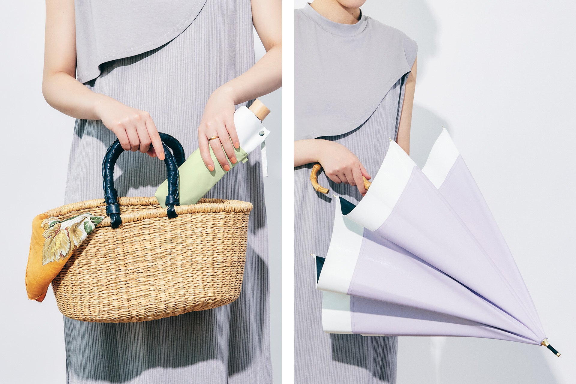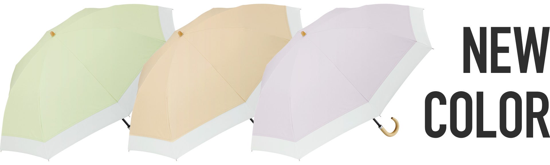 そのほか既存モデルから、日傘ビギナーにもおすすめの持ち運びにうれしいコンパクトサイズ「折りたたみ3段」、8本骨で美しいシルエットのバンブーハンドルの「長傘」もラインナップします。