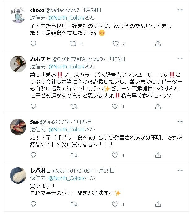 先日ノースカラーズのtwitterで商品についてツイートしたところ、2100件以上のいいねと250件以上のリツイートがあり、世の中の関心を集めています。