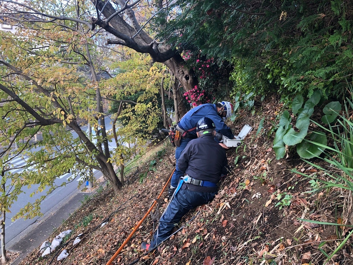 【全国初】藤沢市でICT先進技術を活用した法面、急斜面等の崩落危険予知の計測を開始