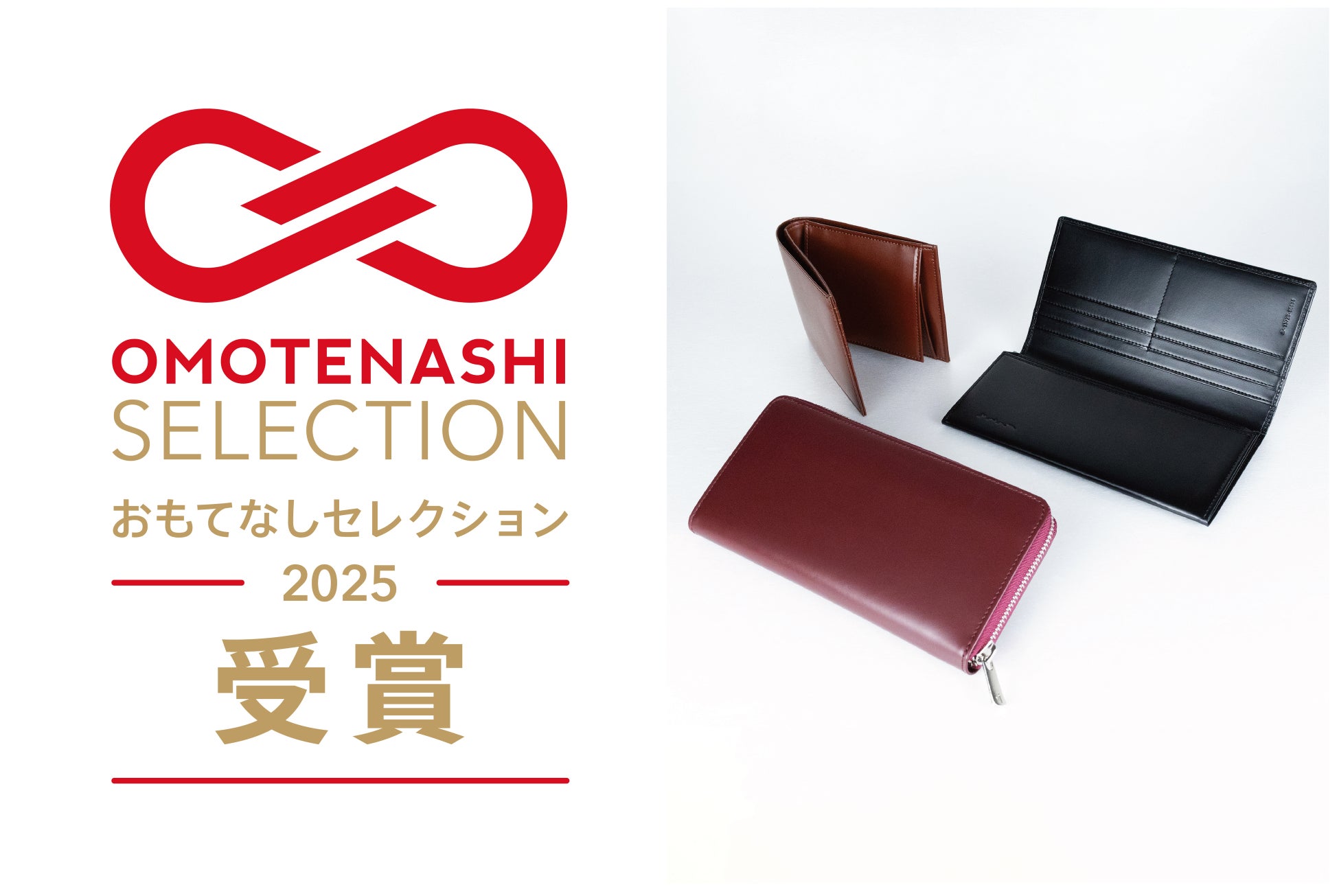 「さとり 松阪牛革財布」シリーズのさとり 長財布、さとり 二折財布、さとりナチュラル ラウンドファスナー長財布が「OMOTENASHI Selection 2025 受賞」となりました。