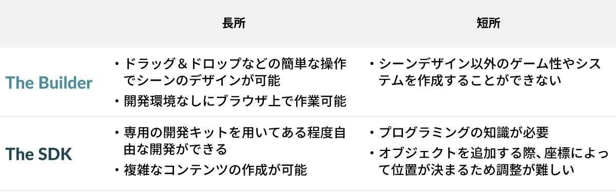 この二つの開発ツールはLANDを所有していなくても無料で手軽に利用できるため、事前にシーンのデモを作成した上でLANDの購入を検討することもできます。