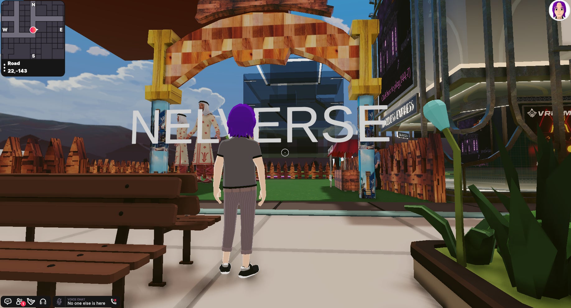 また自身の攻撃力はNELVERSEにはいってすぐ左にある小屋にて確認することができます。小屋にはこのエリアの長であるNELSONが立っているのでクリックを合わせて確認してみましょう。