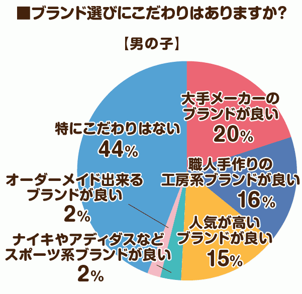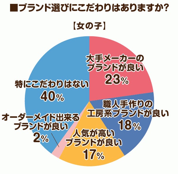 ブランド(メーカー)選びについての質問に対しては、男女ともに4割の人が「特にこだわりはない」という回答でした。