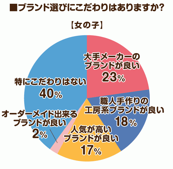 残り6割についても、「大手メーカー」「職人手作りの工房系ブランド」「人気が高いブランド」の3つに票が分散する形だったので、特に偏った人気などはないようです。
