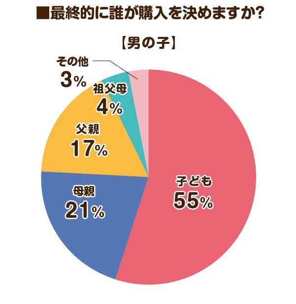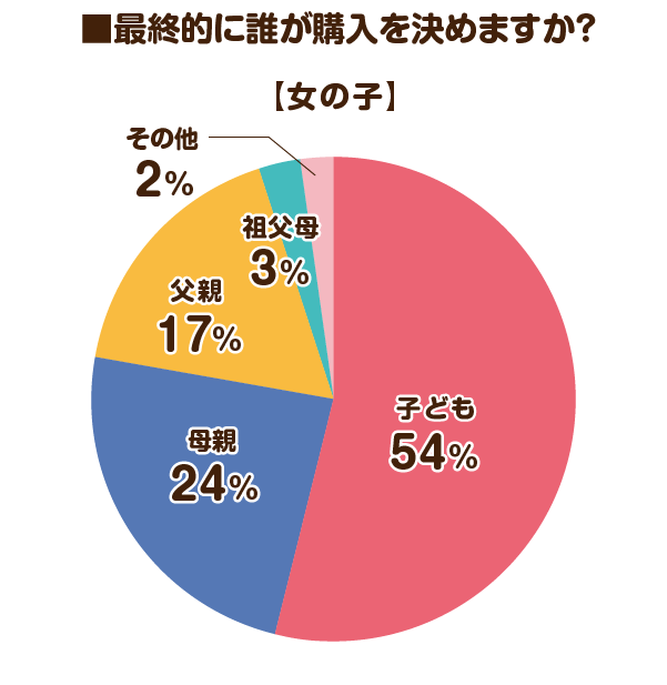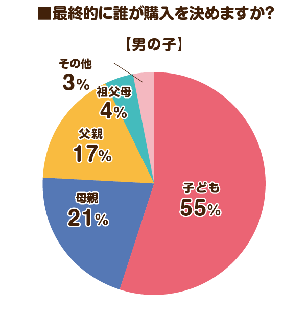 最終的に誰が購入を決めますかという質問に対しては、男女ともに「子ども」が過半数を超える結果となりました。