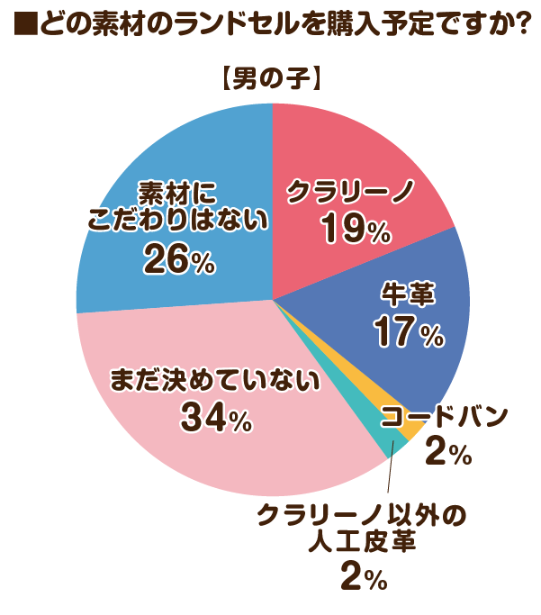 一方、次点は男女で回答が分かれており、男の子の場合は「デザインや色」「価格」「丈夫さ」の3つがほぼ同票という結果になりました。