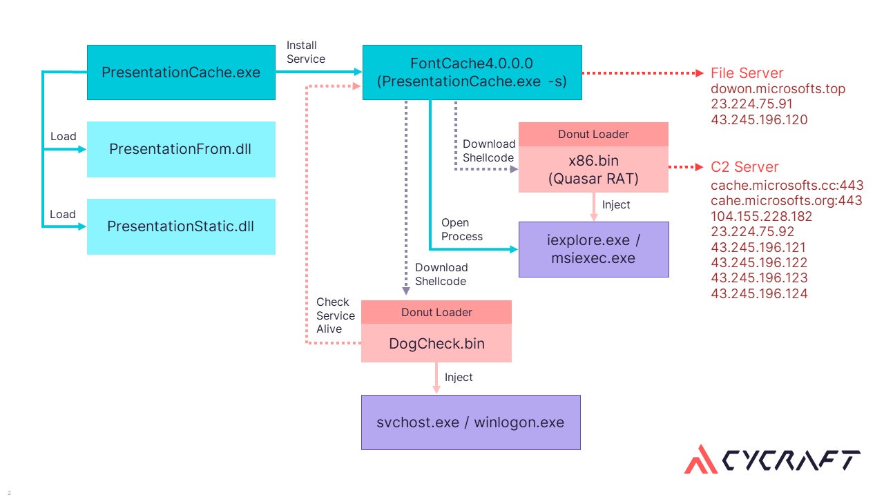 2021年11月のハッカー攻撃を受けて、弊社は金融機関のインシデント調査(Incident Response, IR)を行った際に、第二波のハッキング行為を検知し、その後即詳細なマルウェア分析とフォレンジック調査を開始した。その調査から、第二波の活動のピークは2022年2月10日から13日にかけて行われ、攻撃者のソースIPは香港、QuasarRATというバックドアプログラムを使用していたことがわかった。 マルウェアの起動方法、保護メカニズム、マルウェアと通信しているC2サイドを分析した結果、2021年末の金融セキュリティインシデントと同じ一連の攻撃者の活動は、中国の有名ハッカーグループAPT10によるものと考えられ、台湾国内の金融機関の内部データを盗むことを主目的としていると我々は結論付けた。