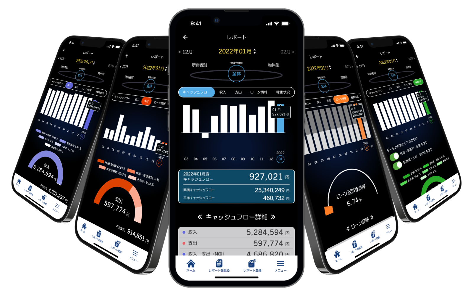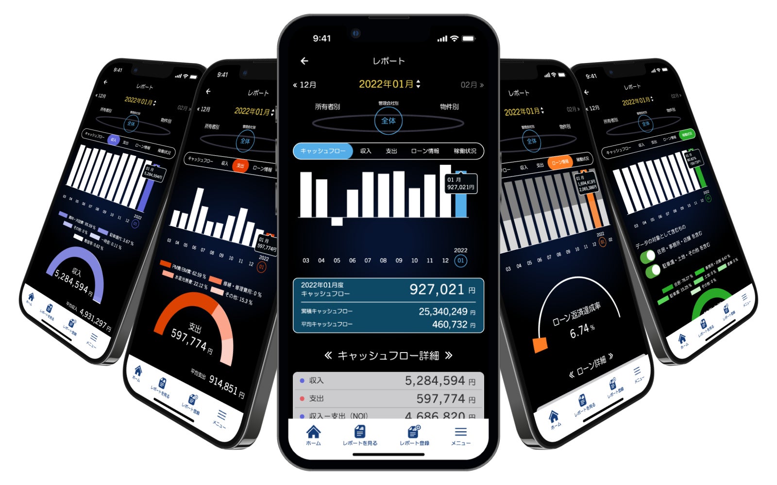 管理会社から毎月送られてくるマンスリーレポートをデジタル化することで、ユーザーは簡単に所有物件の情報にアクセスでき、家賃収入や支出など詳細な収支情報が追跡できるアプリならではの便利な機能を搭載しております。