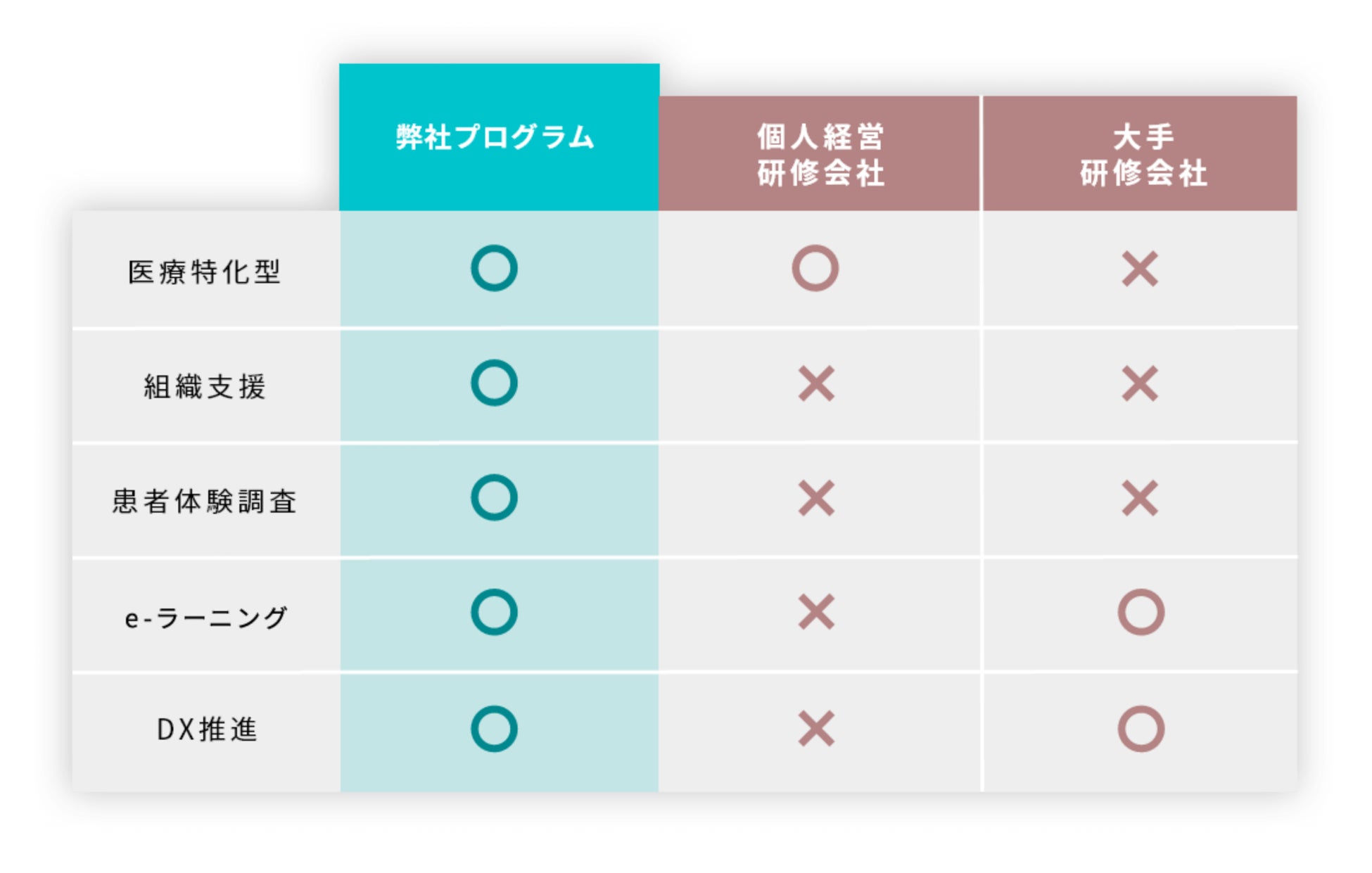 医療接遇研修の効果に限界を感じている、中長期的な取り組みを検討している医療機関のご担当者さまはぜひご相談ください。