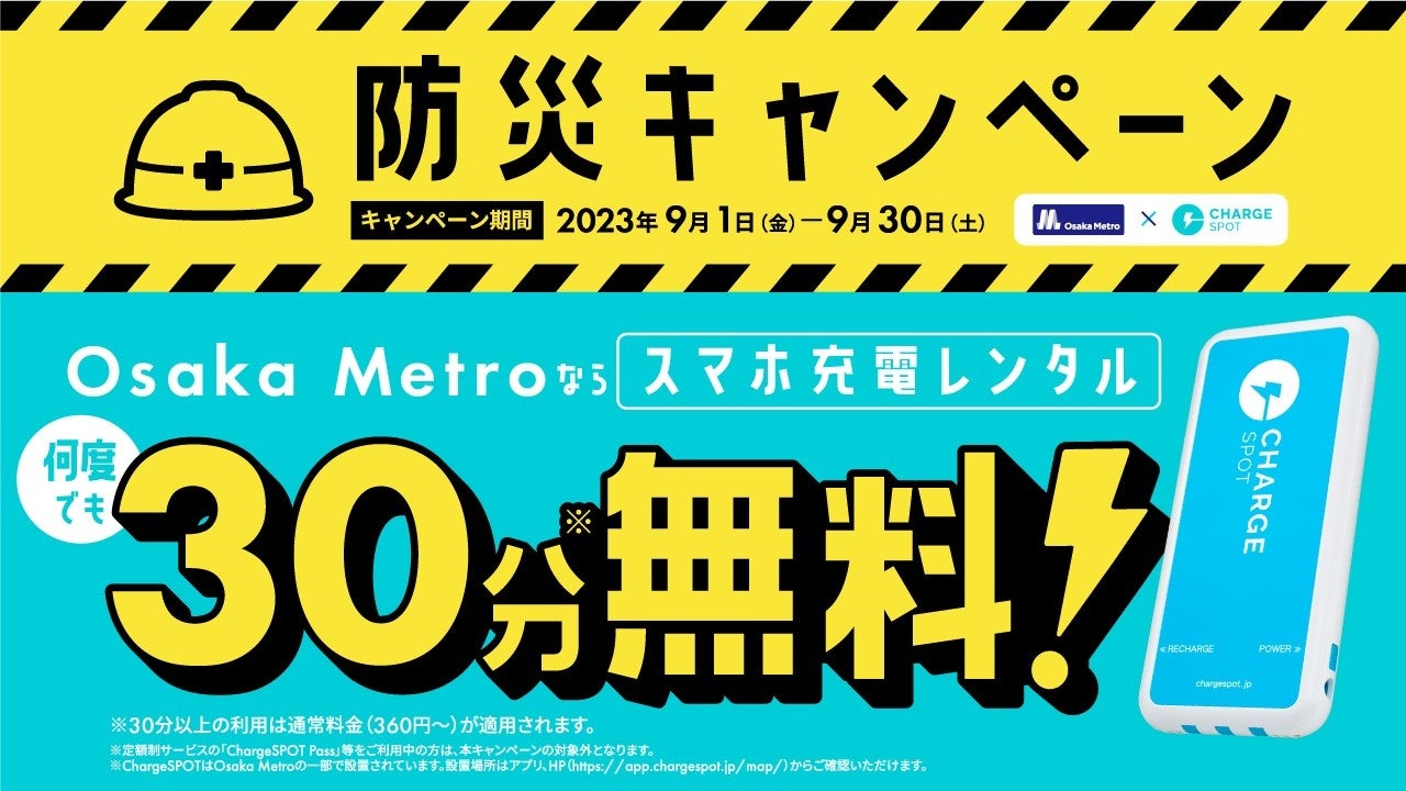 -9月1日(金)〜9月30日(土)の間はOsaka MetroでChargeSPOTが30分無料!-