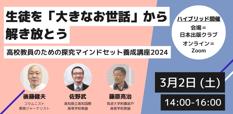 3月2日(土)開催! 生徒を「大きなお世話」から解き放とうー高校教員のための探究マインドセット養成講座2024