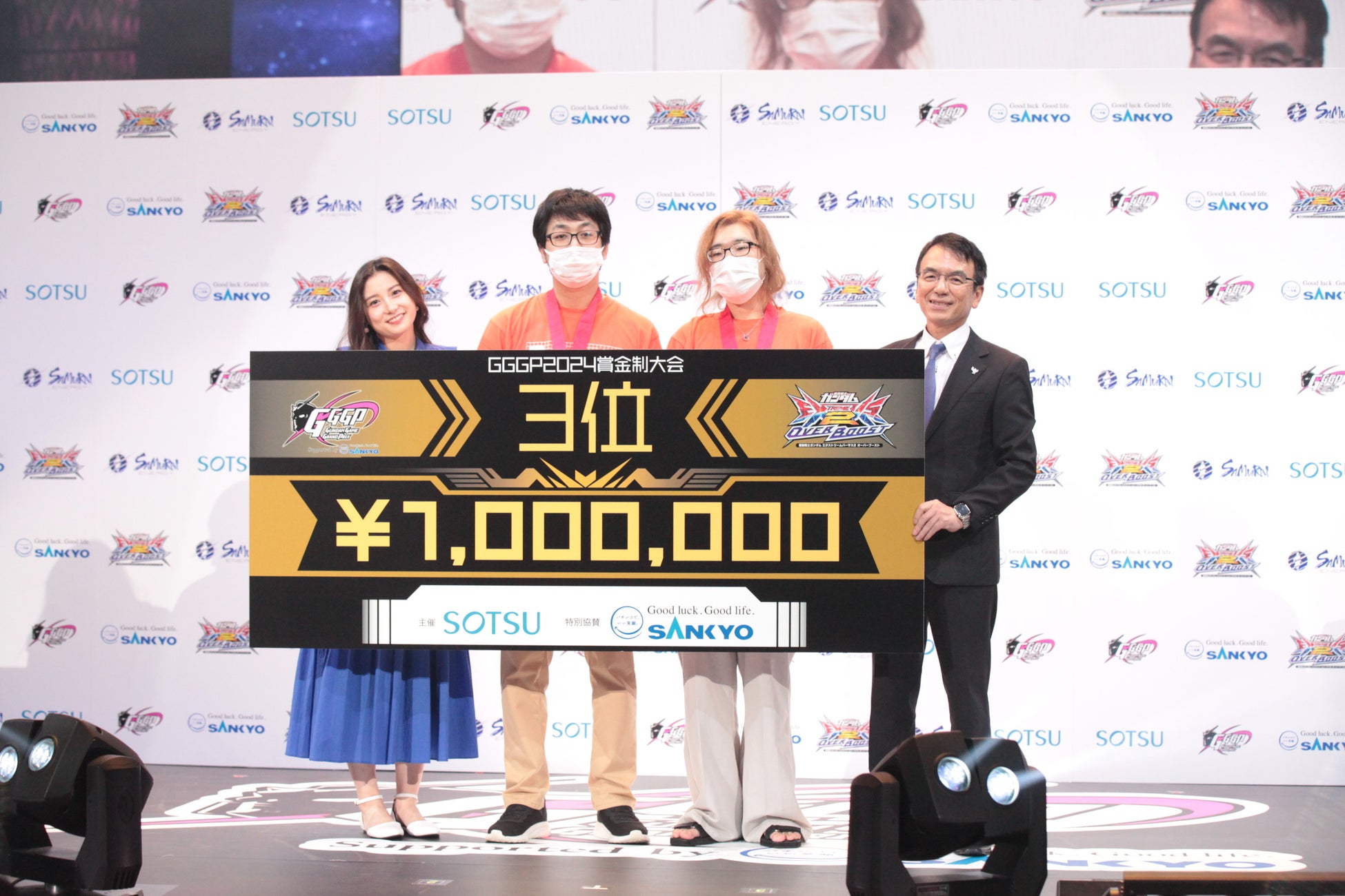 表彰式では、特別協賛の株式会社SANKYO東郷裕二 専務執行役員から手渡されたトロフィーを【横綱】チーム2人で大きく掲げ記念撮影。試合前に「2連覇取ります!」と意気を伝えたちゃんるい選手は「2連覇したので、自分たちが最強!」と喜びのコメントをした上で、「応援してくれた皆さまありがとうございました」と感謝を述べました。エンディングでは、熱い試合の数々にプレイヤーを称えるコメントとともに観客へのお礼をもって、GGGP2024 賞金制大会は幕を閉じました。