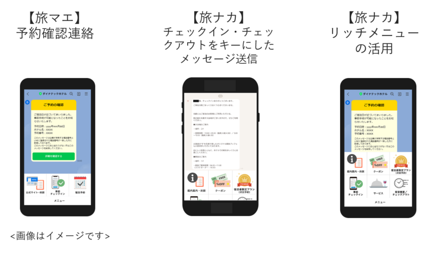ホテル管理システム(PMS)「Dynalution(ダイナリューション)」において、LINEとホテル管理システム(PMS)のデータを連携させることで、DX推進や自社予約強化ができる新機能です。