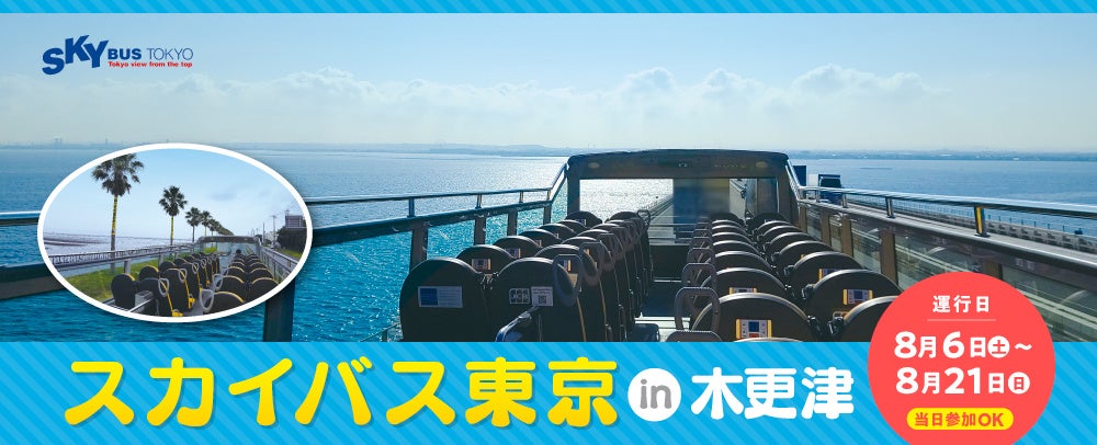 2階建てオープンバス「スカイバス東京」を運行する日の丸自動車興業株式会社 (東京都文京区 /代表取締役副社長 富田 哲史) は 、『三井アウトレットパーク 木更津』、『東京湾横断道路株式会社』とのコラボレーション企画として、2022年 8月 6日(土)から 8月 21日(日)までの期間中、千葉県木更津市にて『スカイバス東京in木更津』を開催いたします。