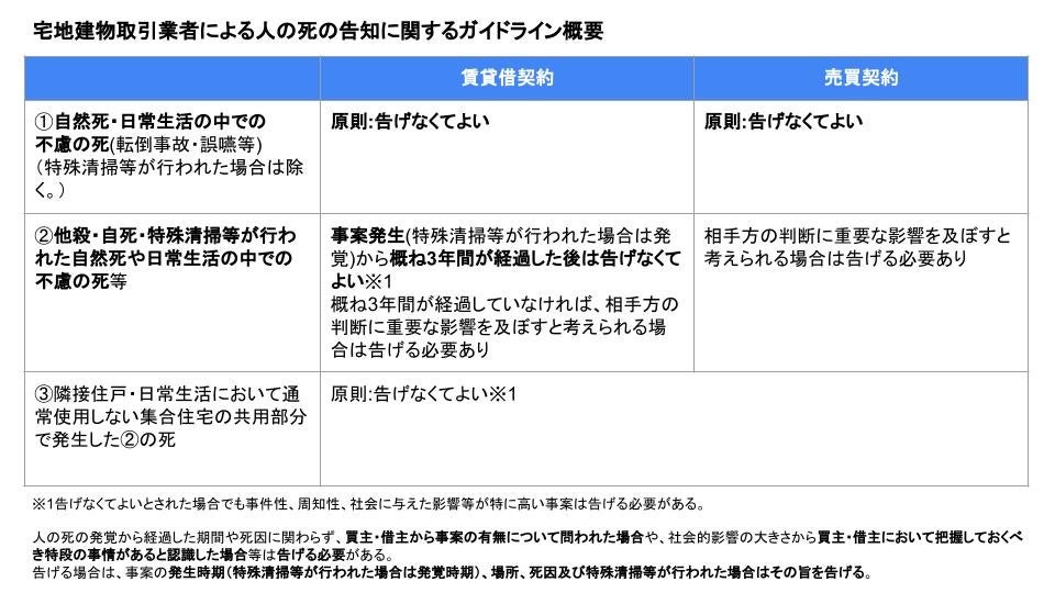 ※引用元:宅地建物取引業者による人の死の告知に関するガイドイラン概要(https://www.zentaku.or.jp/cms/wp-content/uploads/2021/10/gaiyou-1.pdf)