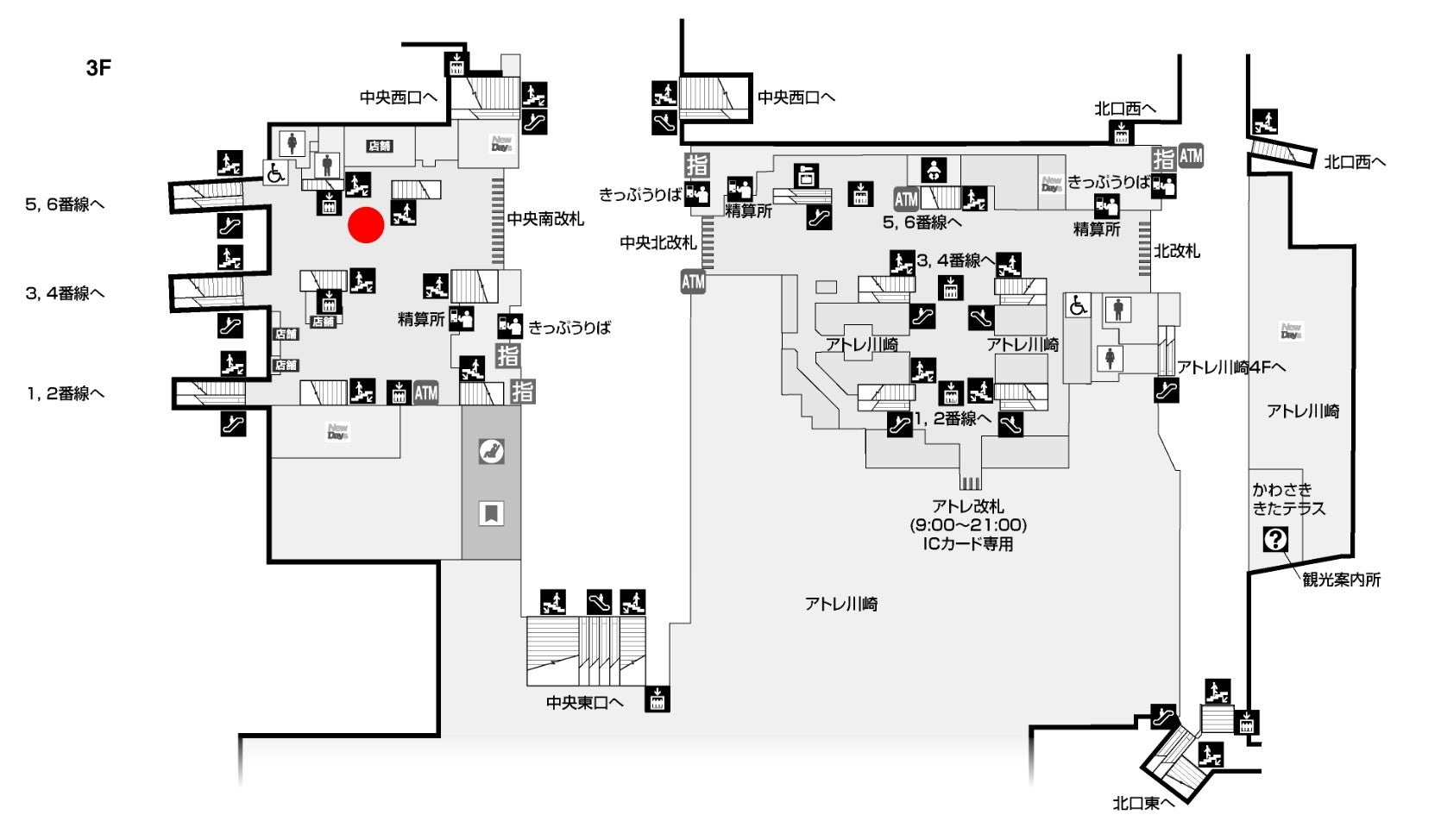 販売場所地図:JR川崎駅 3F中央南改札内