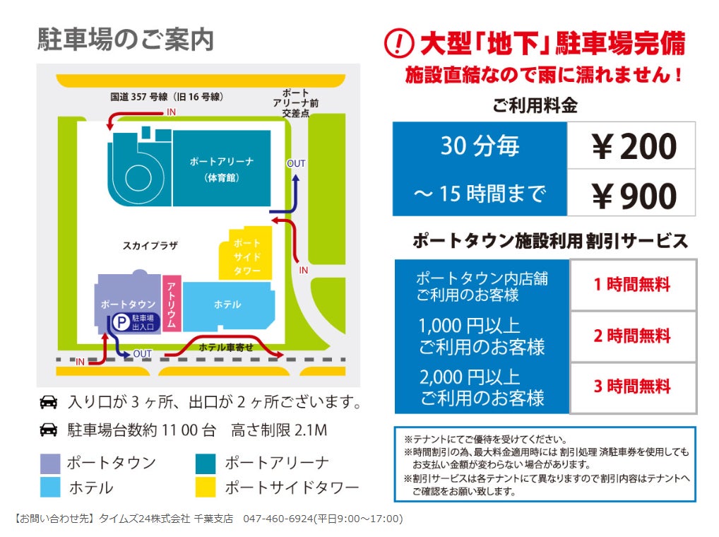 駐車場 :1,100台(有料。ポートタウン施設利用割引サービスあり)