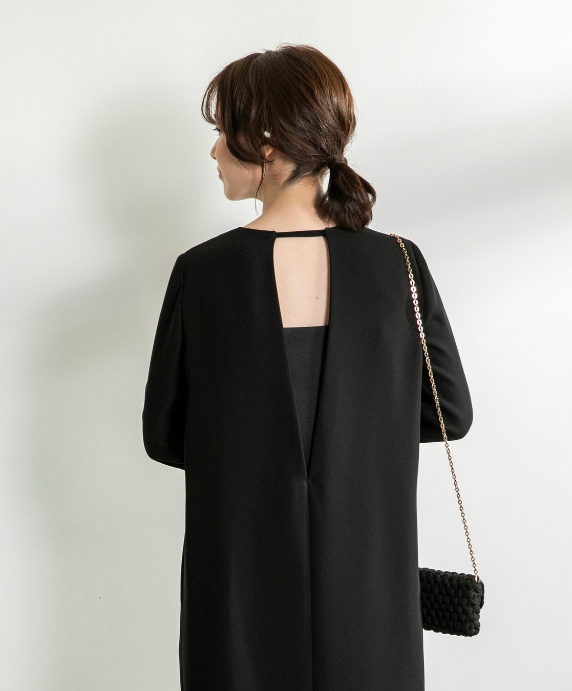 後ろ姿まで主役になるバックオープンドレス。価格:¥39,600