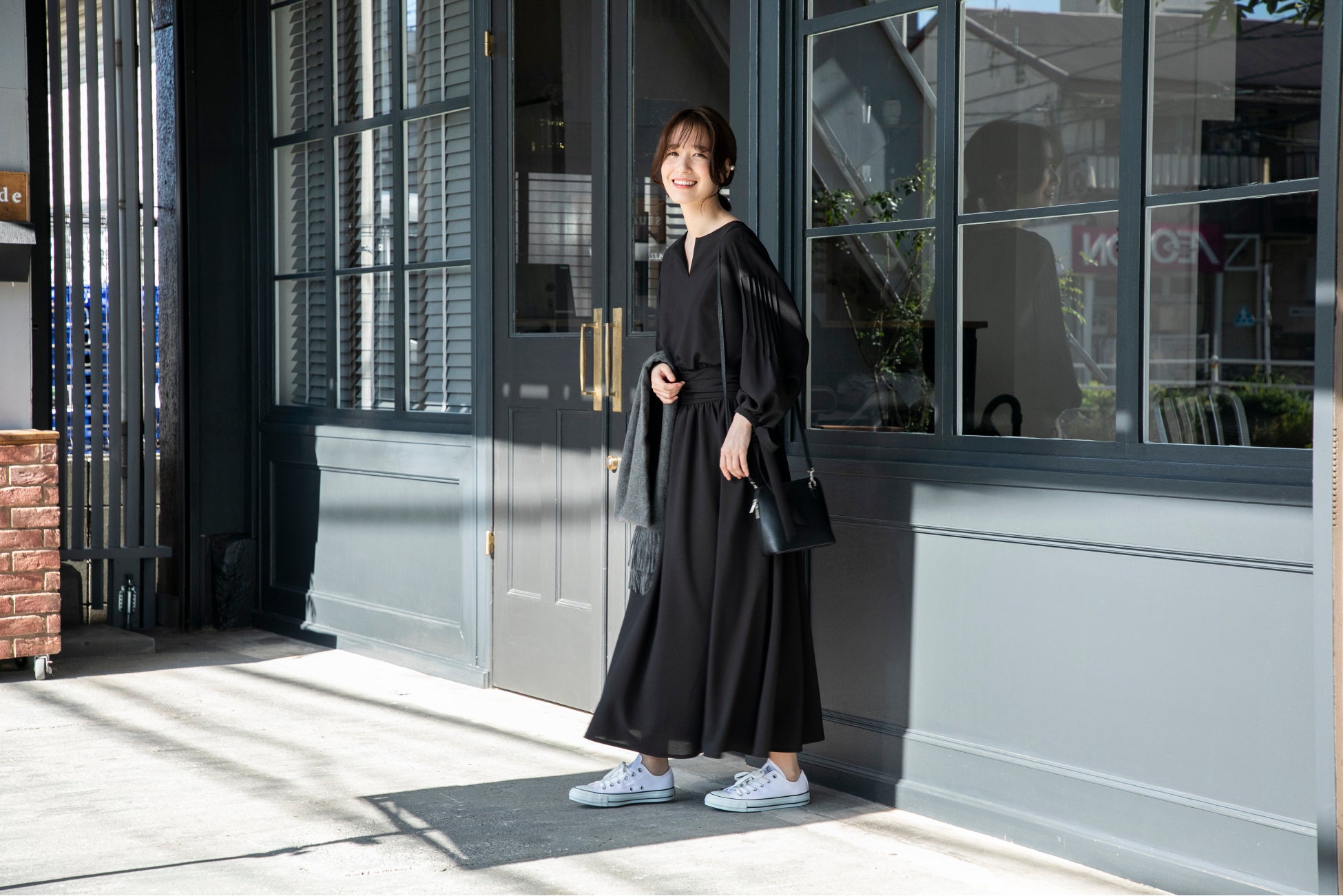 リラックス感を感じさせる大人のブラックドレス。価格:¥42,900