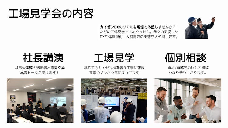 私も数多くの企業様に訪問や支援させてもらいましたが、協和テクニカ様は、現場のカイゼン活動と経営活動がつながっている稀有な会社です。今回の工場見学会を通じて参加した皆様のご参考になること間違いなしです。ぜひご参加ください。お会いするのを楽しみにしております。