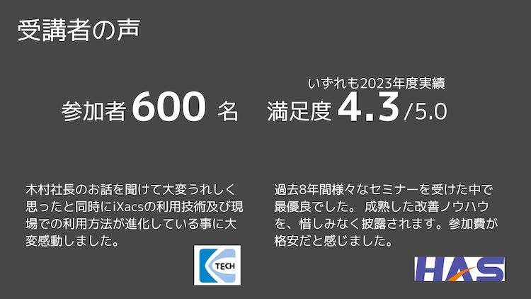 今回は実際のiXacsの活用状況や改善事例の他、ITツールを活用して組織に変革を起こすマネジメント手法をご覧いただけます。