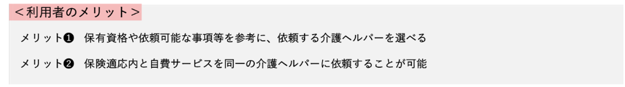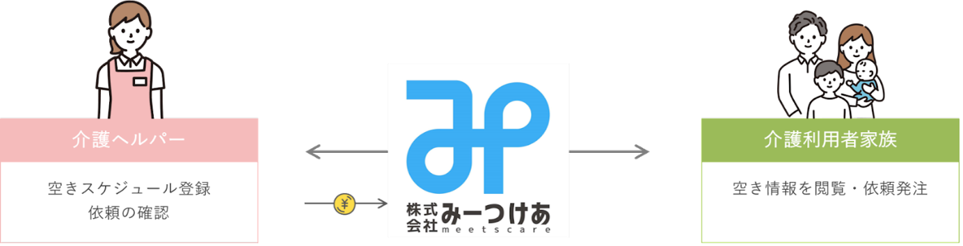 そこで、みーつけあでは利用者が自費サービスの仕事を指名したヘルパーに直接依頼できる仕組みを提供いたします。