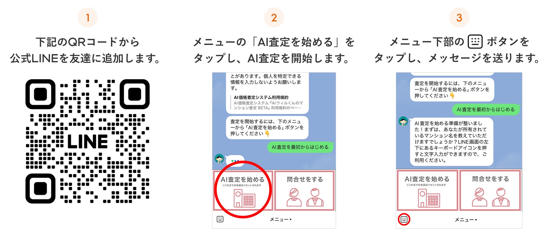 <AIウィルくんのマンション査定 BETA(LINE)の使い方>