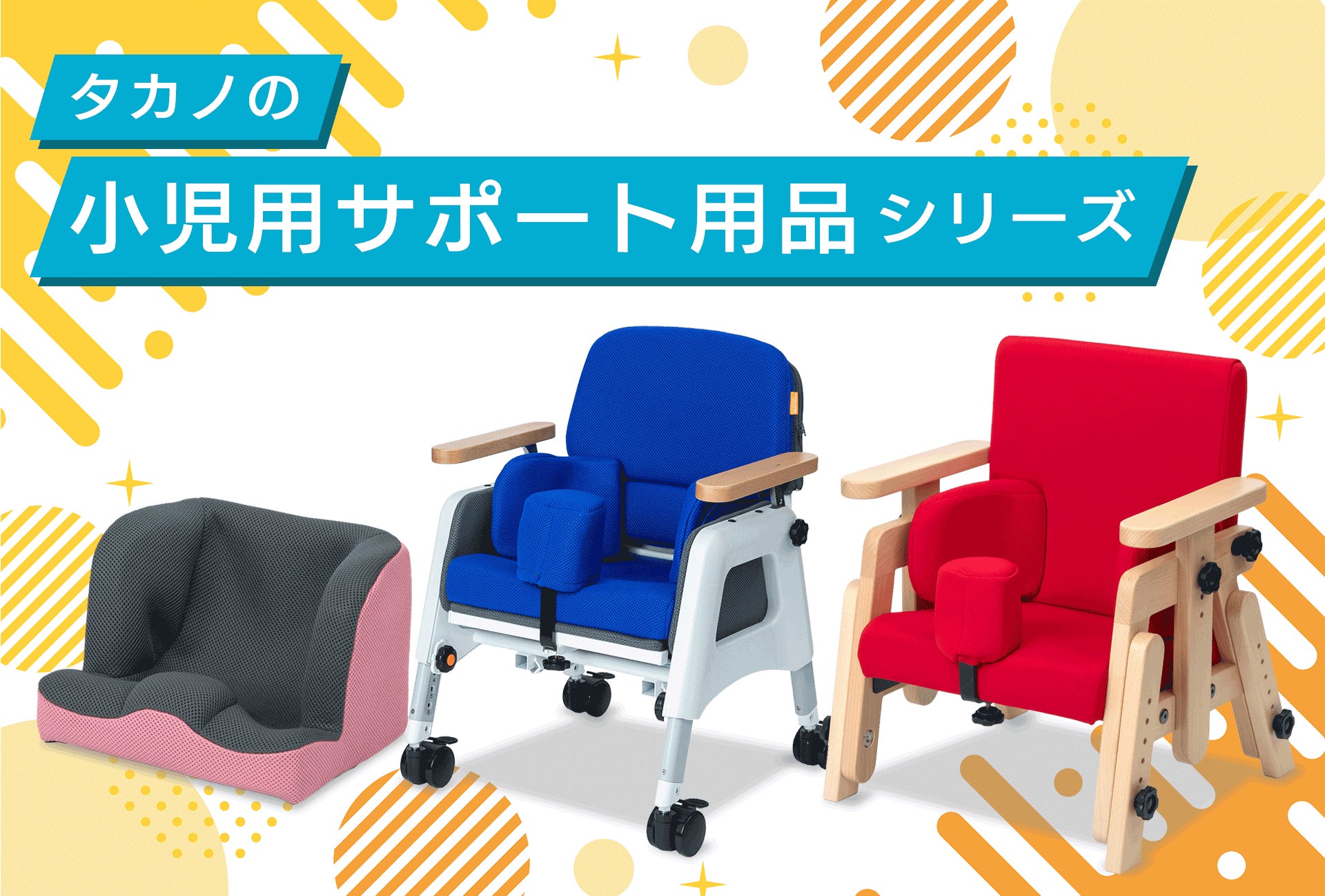 当展示会には、小児用座位保持装置「バンビーナposi(ポジ)」、学童いす用クッション「LAPS kids」などを展示します。実際の製品に触れながら、使用感やお子様の試用中の反応などを体感いただける展示会です。今年は新製品も参考出展しますので、ぜひ、タカノブースへお立ち寄りください。