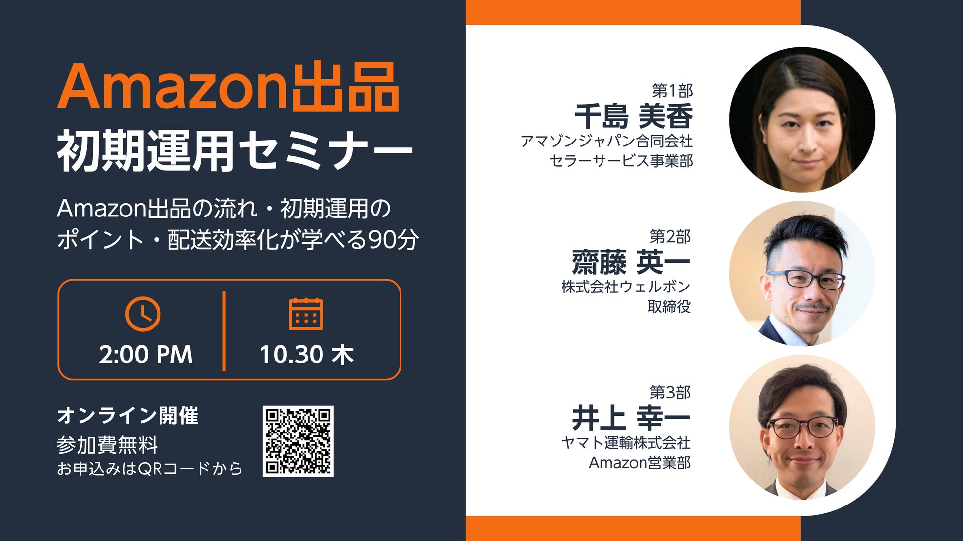 株式会社ウェルボンは、2025年10月30日(木)にAmazon出品の検討〜初期運用段階の方を対象とした共催オンラインセミナーを開催します。なお、ゲストとしてアマゾンジャパン合同会社セラーサービス事業部の千島氏に登壇していただく予定です。