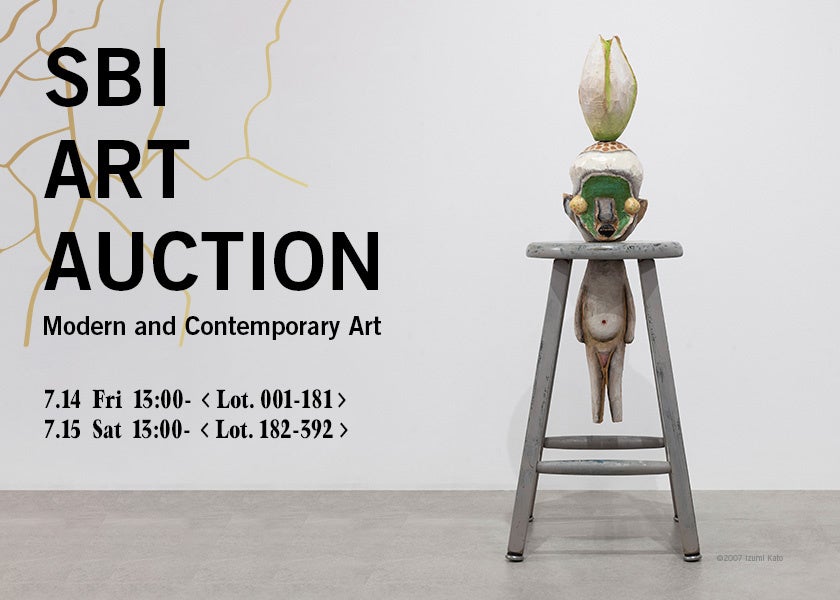 ■実施概要 第59回SBIアートオークション| MODERN AND CONTEMPORARY ART 【オークション】 2023年7月14日(金)13:00- Lot. 001-181 7月15日(土)13:00- Lot. 182-392 【下見会】 2023年7月12日(水)11:00-19:00 2023年7月13日(木)11:00-19:00 【会場】 ヒルサイドフォーラム(〒 150-0033 東京都渋谷区猿楽町 18-8 ヒルサイドテラス F棟 1F) ※電話、書面、オンラインの他、会場でもご入札いただけます。 ※オークションの進行状況はYouTubeから視聴できます。 YouTube Streaming:https://www.youtube.com/channel/UC32a7MUOI-xI1DY-CghG-KA ※詳細はウェブサイトをご確認ください。 |
