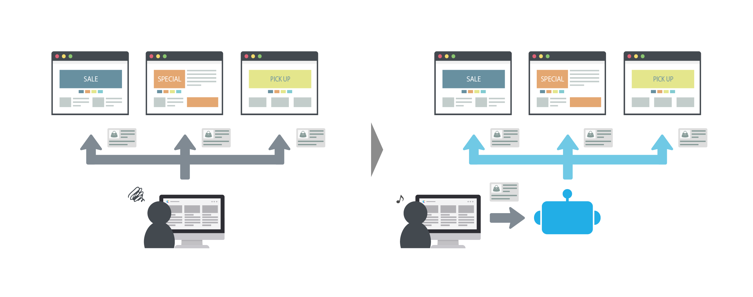 複数のECサイトを運用している場合や、関連する複数のポータルサイトに毎度同じ情報を登録しているような場合に、登録や更新にかかる作業時間を大幅に削減する事ができます。