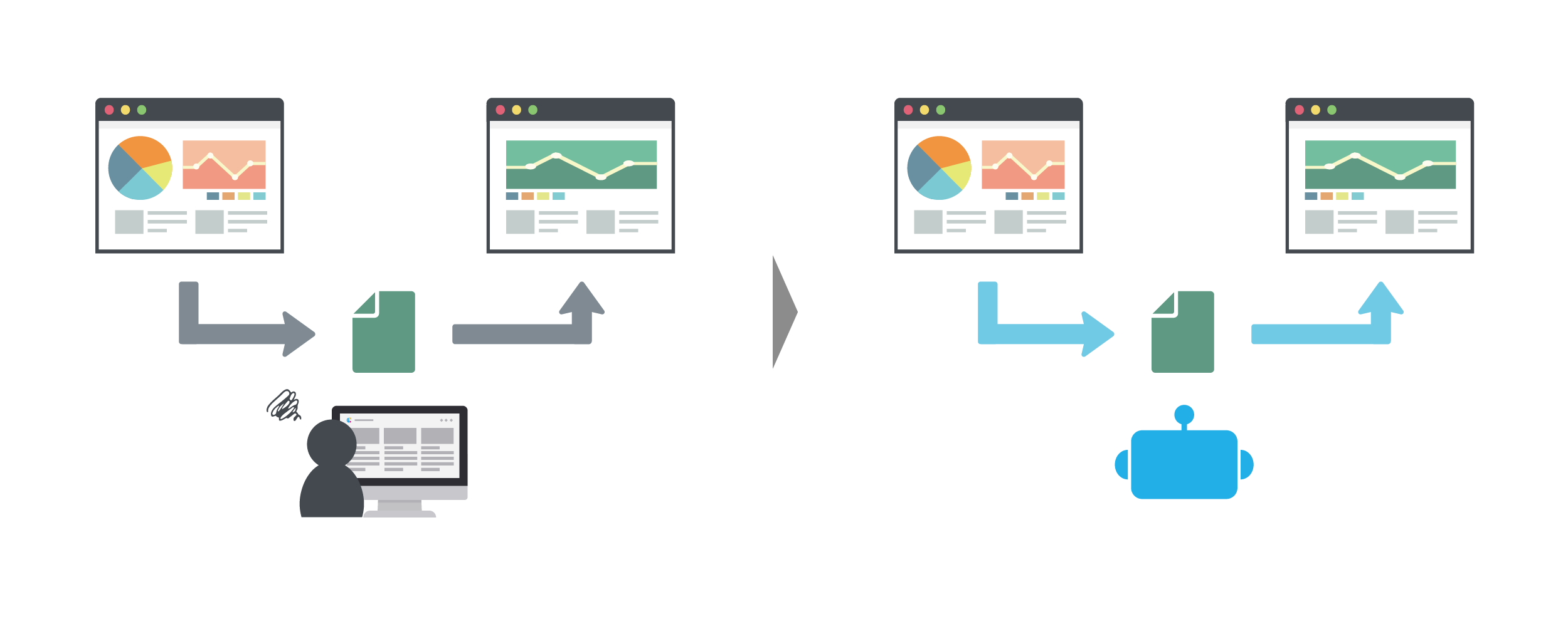 クラウドBOT®は、ノーコードでWeb自動操作BOT(ロボット)を作成できるクラウド型のRPAサービスです。BOTはブラウザ上で日常的に行っている作業の自動化や、クラウドサービス間のデータ連携など様々な用途にご利用頂けます。今回のバージョンアップにより、ファイルのアップロード操作やダウンロード操作といったこれまでクラウドBOTが対応していなかったファイル関連の操作をBOTに記録できるようになりました。これにより、BOTはユーザが行うほとんどのブラウザ操作を記録し、自動操作する事が可能になります。