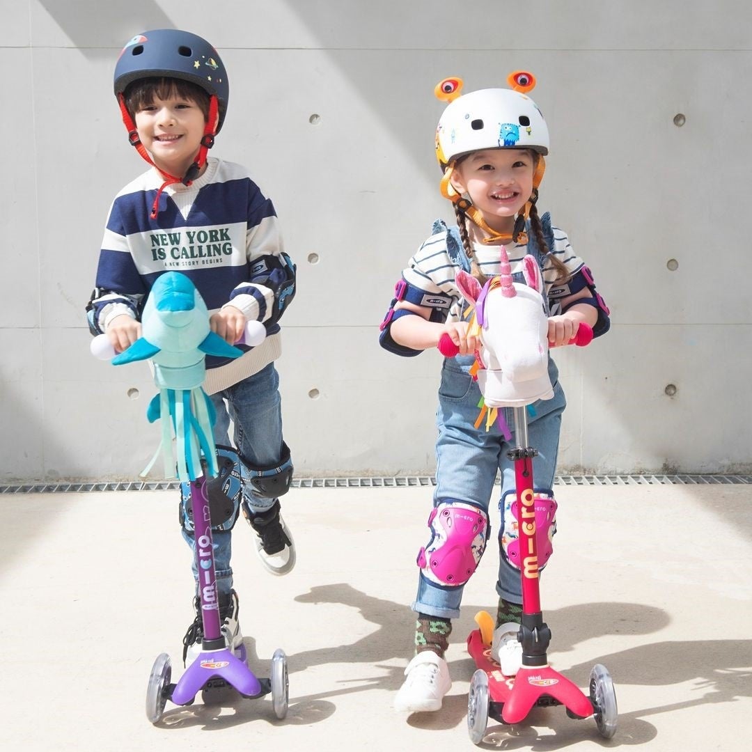 - 愛くるしいデザインでライディング中の衝突から大切なお子様を守ります。