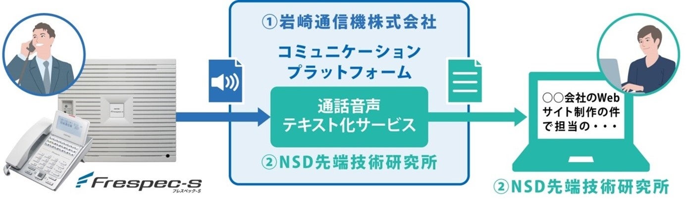 株式会社NSD(本社:東京都千代田区、代表取締役社長:今城義和、東証1部 9759)のグループ会社である株式会社NSD先端技術研究所(以下、研究所)は、協賛企業である岩崎通信機株式会社(以下、岩崎通信機)と音声認識技術を活用し、下記のとおり、ビジネスホンの内線・外線・会議通話に対応する通話音声テキスト化サービスを共同開発し、PoC(概念実証・価値検証)を開始しました。