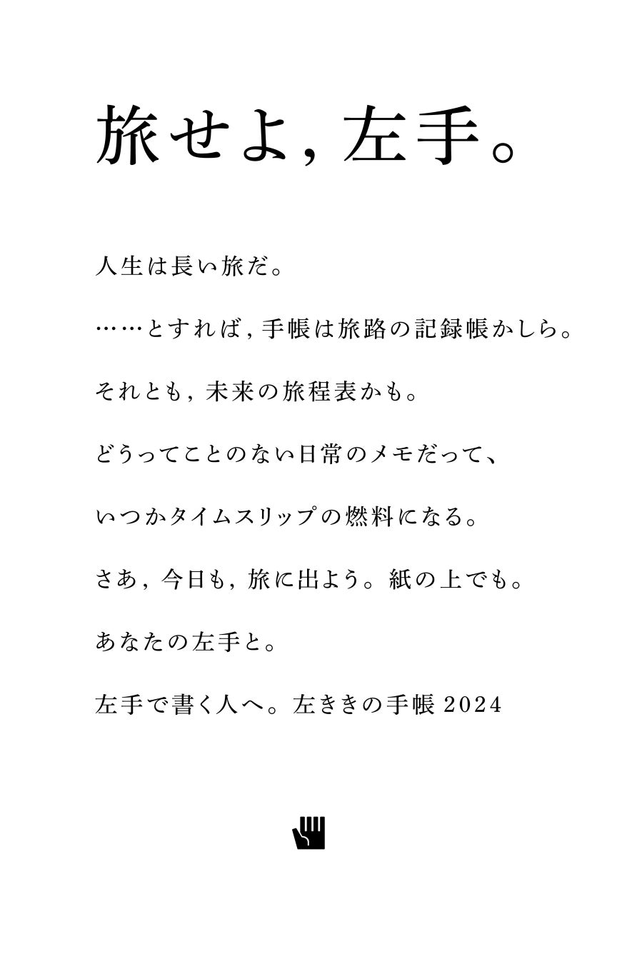 左利きにうれしい道具を提案する、左ききの道具店から2024年版の手帳ができました。左手で書く方のための手帳。左利きのスタンダードを目指したライト式ウィークリーの手帳です。