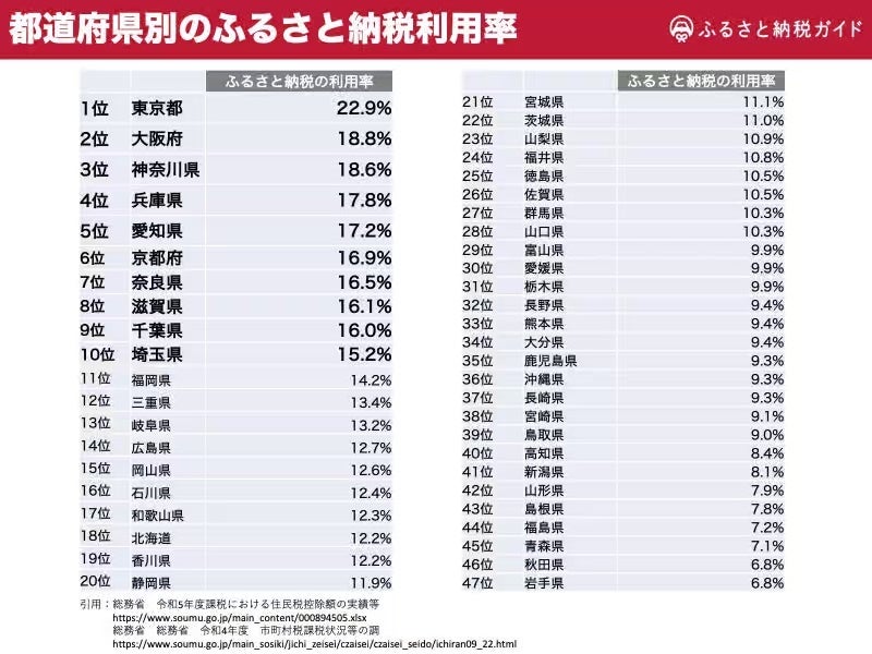 ふるさと納税の都道府県別「利用者数・利用率」と「平均寄附金額」を発表|2023年最新データ