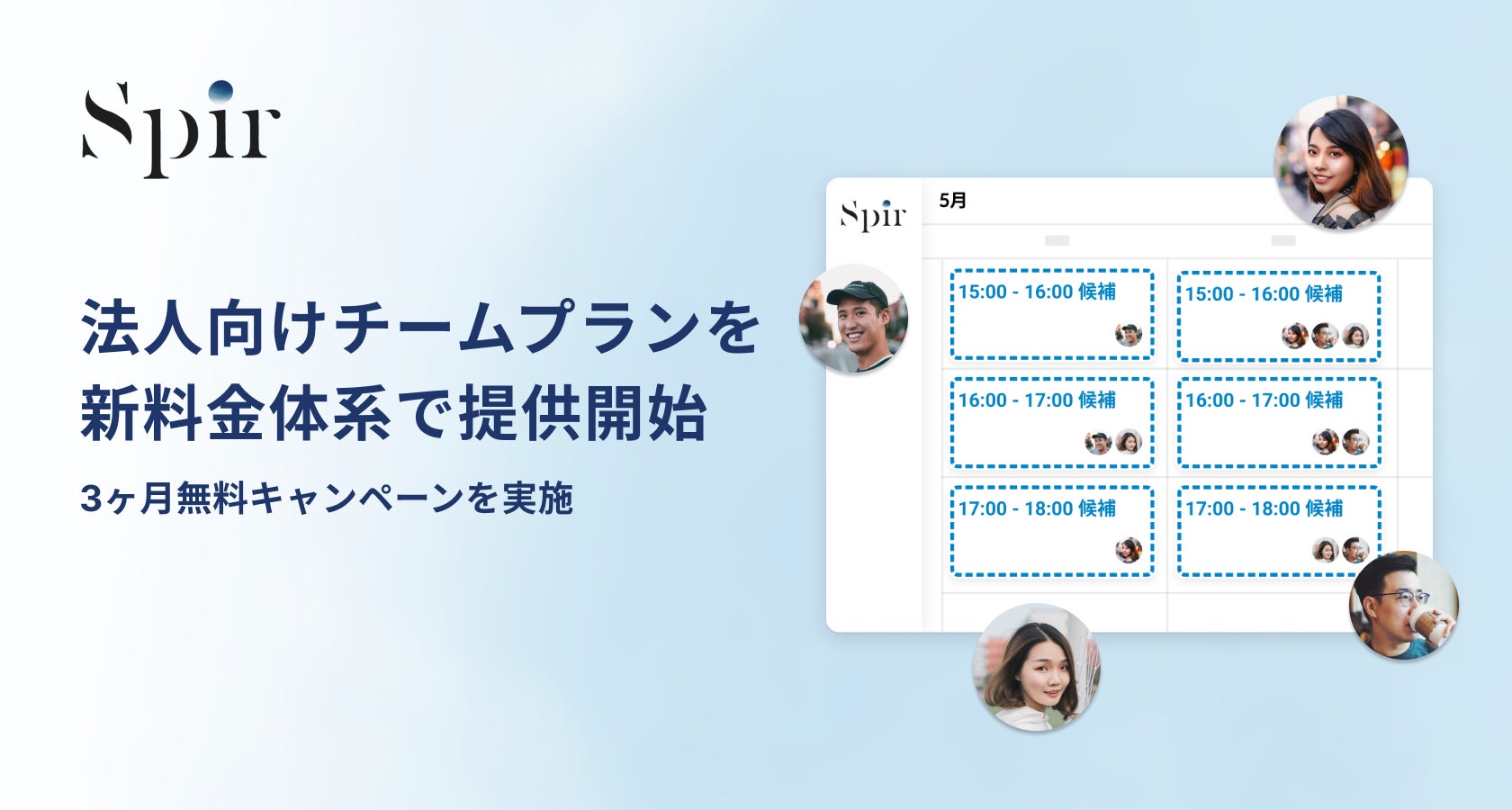 日程調整ビジネスカレンダーのSpir(スピア)、法人向けのチームプランを新料金体系で提供開始