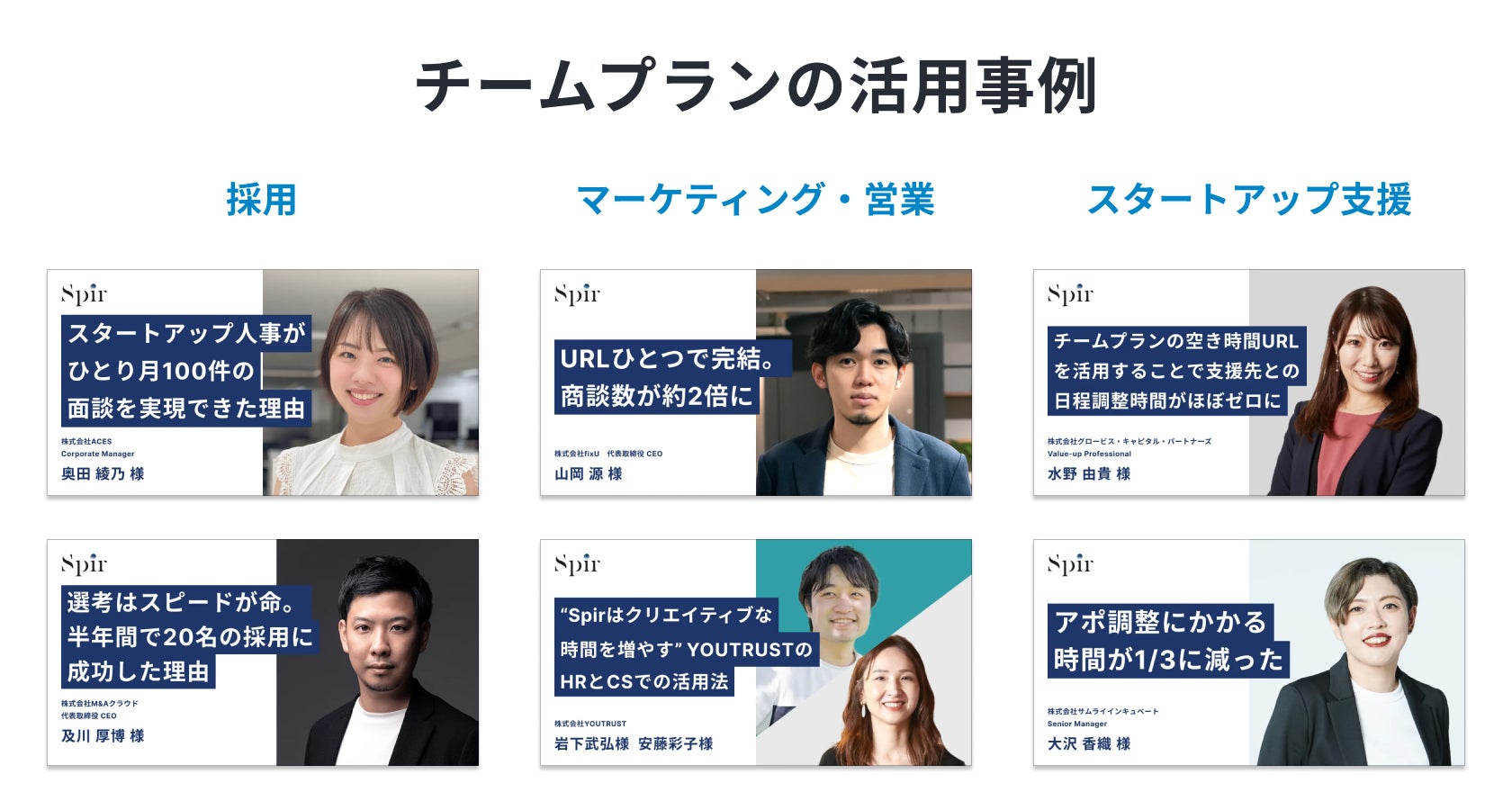 チームプランはクローズドβ版として100社以上のチームで、採用、マーケティング・営業、スタートアップ支援などの幅広い場面での予定管理や日程調整でご活用いただきました。