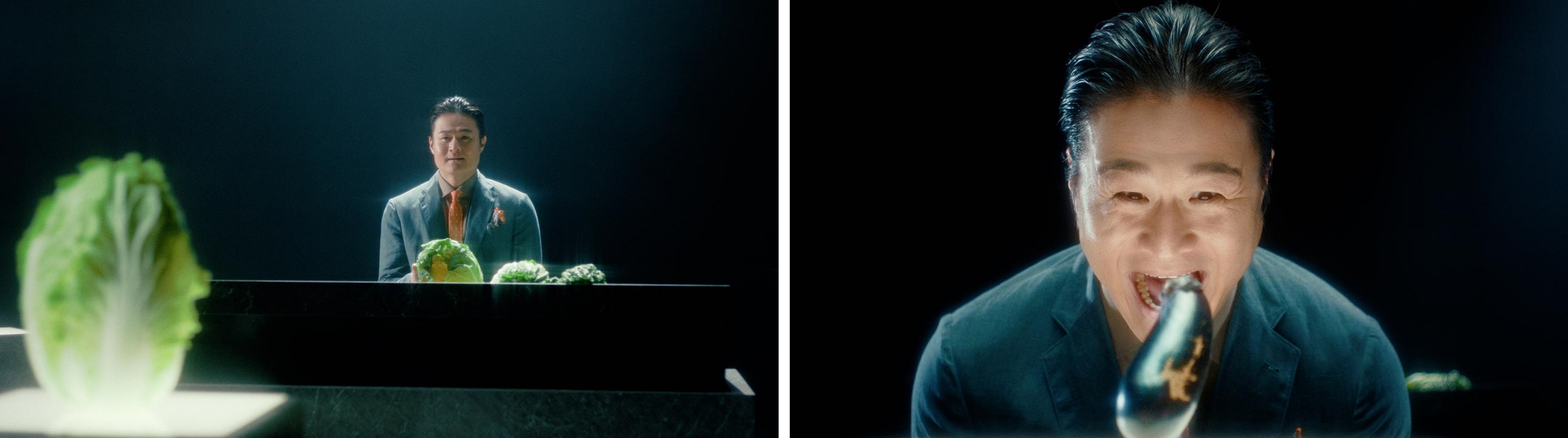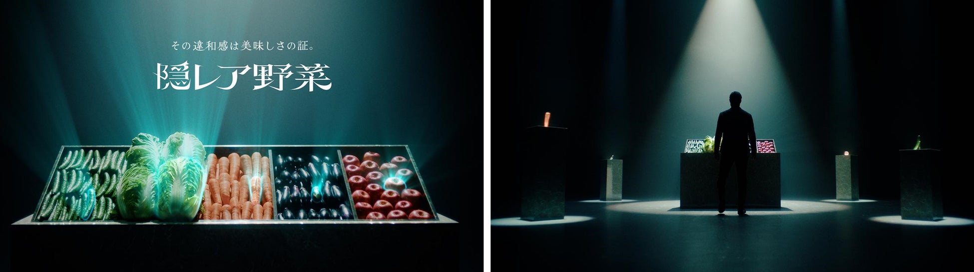 本ムービーでは、ティモンディ高岸さんがギャラリーのような空間で『隠レア野菜』に出会う様子を描いています。ティモンディ前田さんのナレーションにあわせて、白菜、なす、にんじん、きゅうり、りんごの5種類の『隠レア野菜』を手に取りながら、ひとつひとつにポジティブな言葉を投げかけ続ける高岸さんを通じて、『隠レア野菜』の魅力をお伝えするムービーです。終盤には今回の企画にご協力いただいた農家の皆様にも登場いただき、いつもの野菜も、『隠レア野菜』も、愛情を注いで育てる農家さんの姿を描いています。