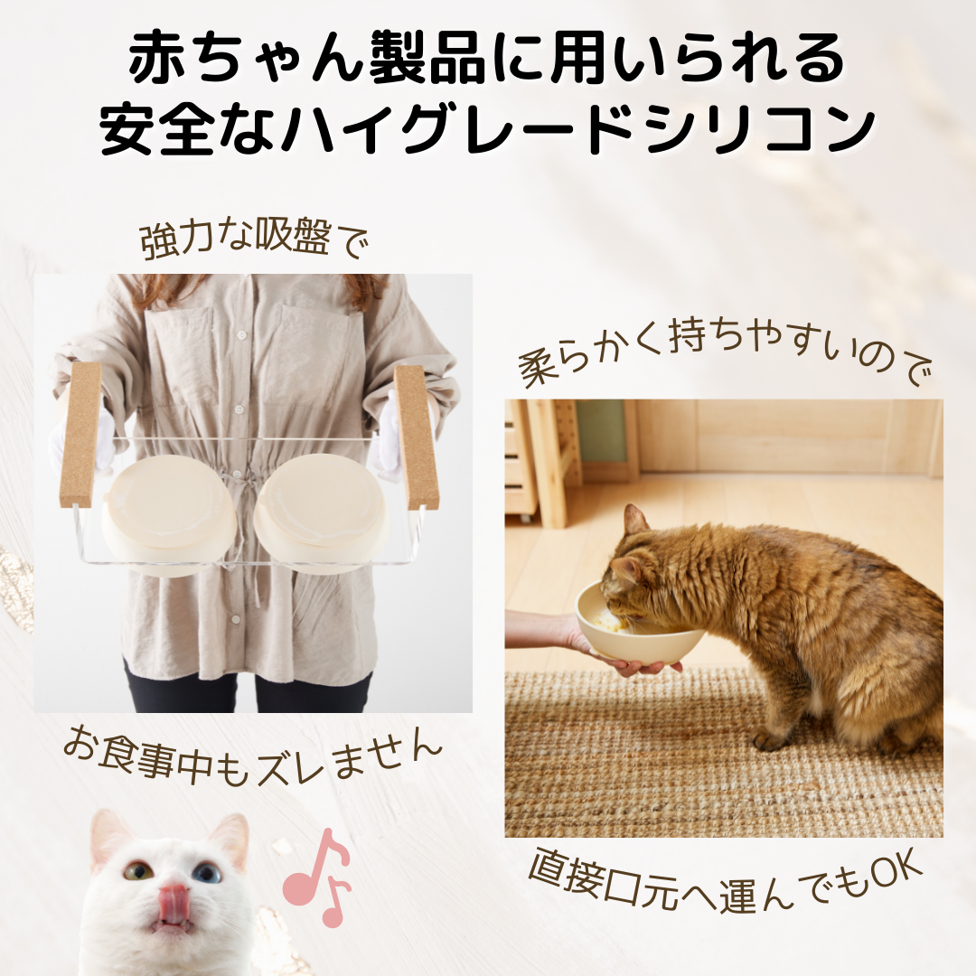 シリコンゴムは柔らかく自由に形を変形させることができるため、高齢猫ちゃんへのお食事サポートにもピッタリ。直接手で持って、猫ちゃんの口元へ運んであげることで、猫ちゃんの食べやすいスタイルでお使いいただけます。