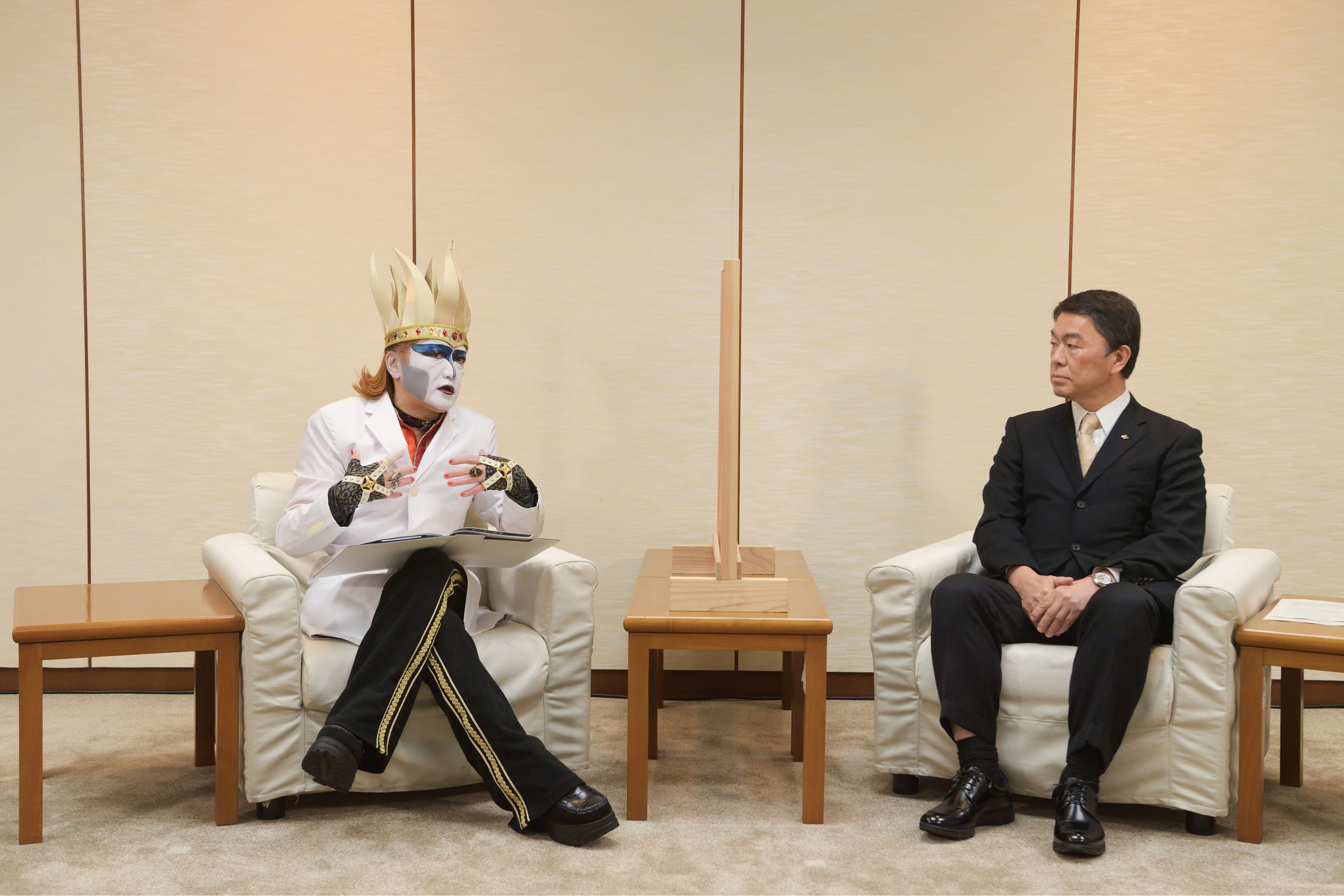 上手な医療のかかり方大使として“地方行脚”をするのは、令和4年12月の福岡県庁に次いで2度目。デーモン閣下が「村井知事は10年以上やっているんですよね。きょう会って、若々しいな、キレが良いなと思いました」と話すと、村井知事は「はい、そのとおりです」と言い、「私は悪魔ではなく天使の化身です」と集まった報道陣を沸かせた。すると、すかさずデーモン閣下が「誰も聞いてないよ」とつっこんだ。
