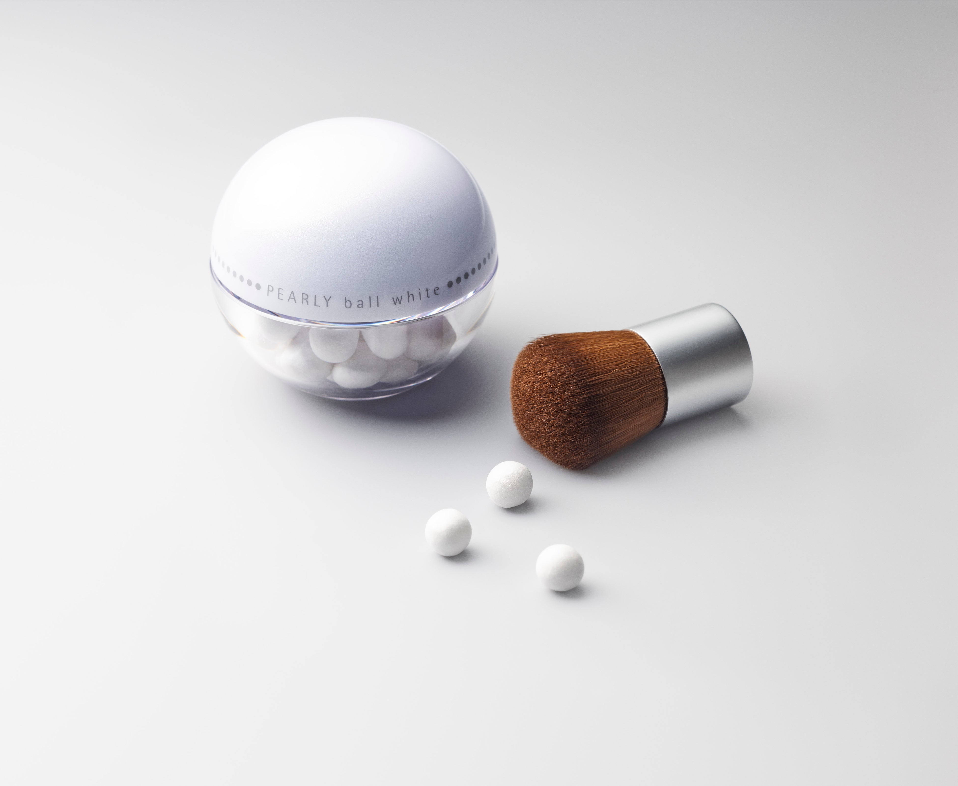 ○真珠のようなホワイトカラーボールが、ツヤと透明感のある華やかな肌を演出します。