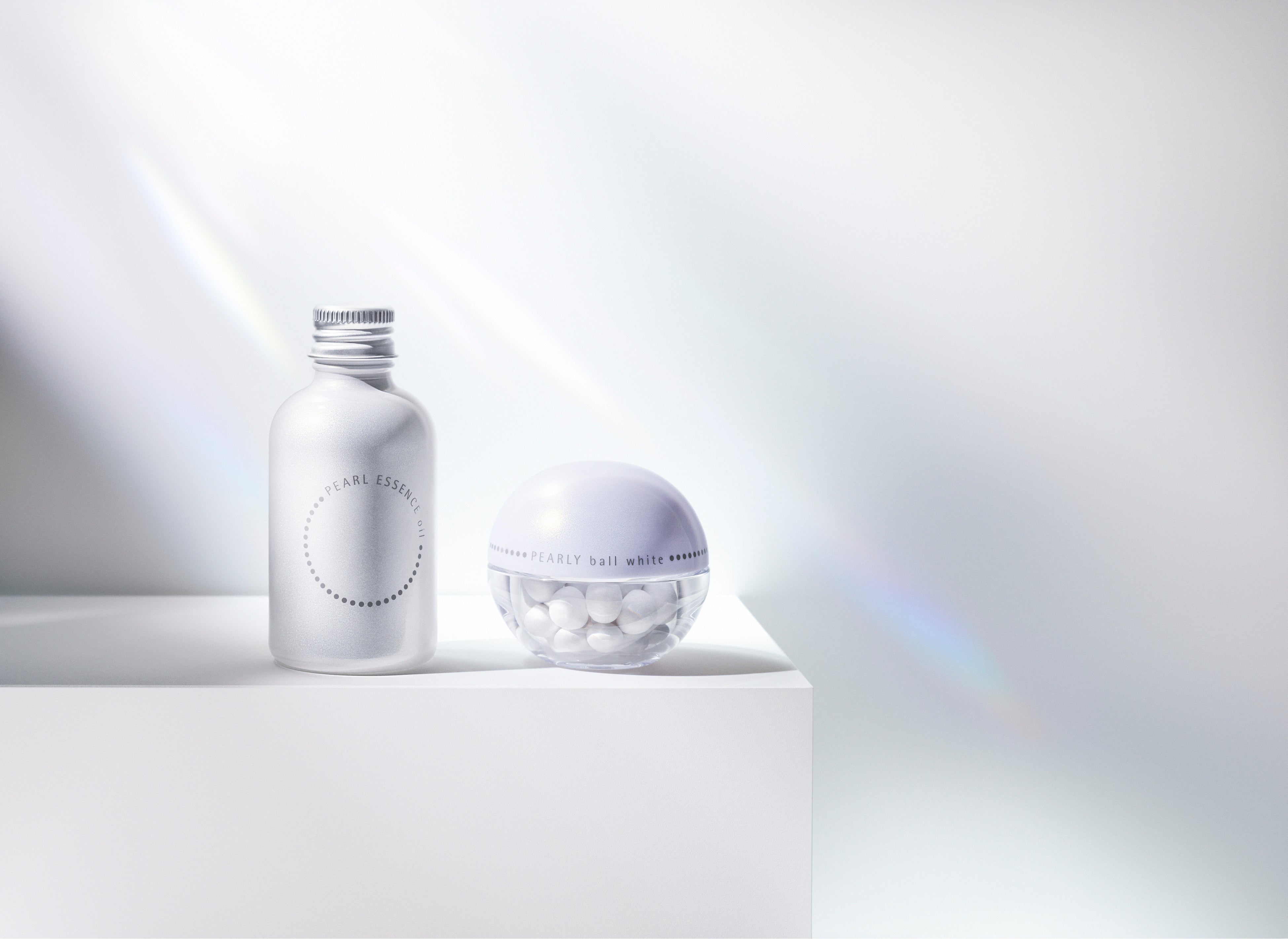 <ホワイトカラーボールで、真珠のような透明ツヤ肌に>